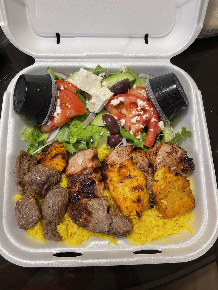 Combination Plate (chicken kabob, shish kabob, souvlaki)