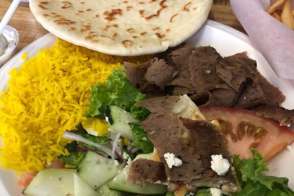 I had no idea this place was in the plaza until some co-workers told me about it and I fell in love with it. I always get the gyro plate, which is the #1 and it is amazing. The whole gyro sandwich with the sauce and the lamb/beef meat is absolutely awesome and if I lived closer to the place, I would be there at least twice per week because that is how fantastic this place is. My co-workers like to get the chicken kabob plate, which I hear is quite delicious with its rice and pita bread on the side. It is a must have!